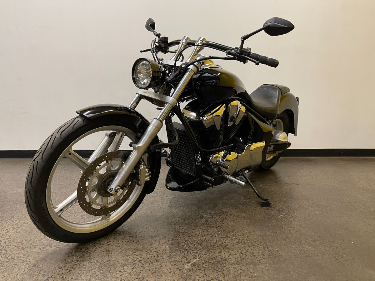 Custom cruiser style, without the custom price tag!! Presenting this gorgeous VT1300CS in stunning gloss black. With super low km?s, cobra pipes, custom rear guard, bar risers and plenty more custom touches, this really is so much bike for so little $$$, with all the hard work done. If you wait around on this one, it will be gone!! Speak to our friendly sales team and secure this bike today!^^This quality pre-owned motorcycle has passed our intensive 49 point mechanical inspection. It's approved for a Mechanical Protection Plan, also it features a hassle free 2 Day Free Exchange option.^^Why buy from us? We're Australia's largest motorcycle retailer, with over 2,000 Used Bikes in stock. Not local?? No worries, we can organise freight Australia wide. Plus Super competitive Finance and Insurance arranged for you by our onsite specialists. We will trade anything on wheels! ^^With up to a 3 year Mechanical Protection Plans available and the most competitive finance and insurance packages available (T.A.P. conditions apply), as Australia's largest motorcycle retailer no one makes it easier to purchase a used Motorcycle. Plus we can organise to have your bike delivered directly to your door anywhere in Australia through our dedicated motorcycle freighters. Why buy elsewhere?